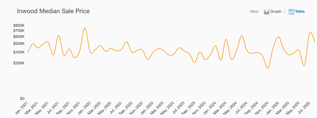 The median condo prices in Inwood remained flat year-over-year at $480K. Median coop sale price in Inwood was $704K, a change of 67.7% year-over-year. There was no statistically significant data for median house sale price activity for the period of July in Inwood.