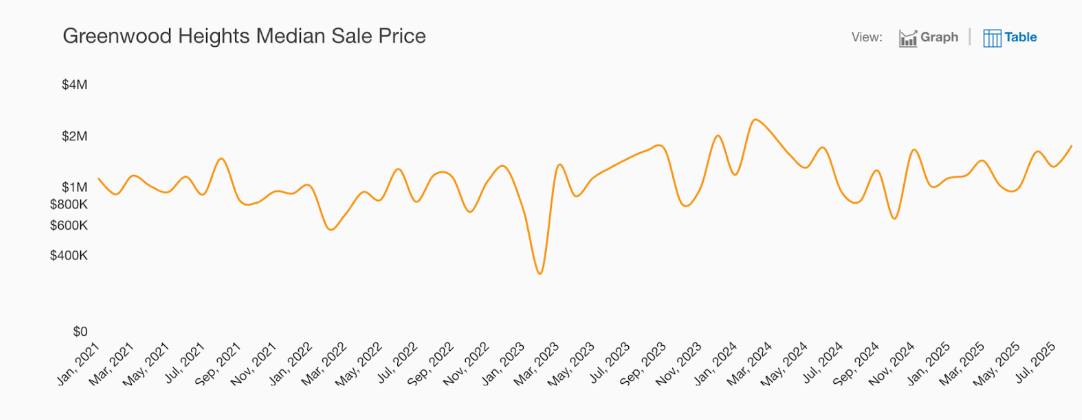 The median house sale price in Greenwood Heights in July was relatively flat year-over-year at $1.9M. However, median condo prices in Greenwood Heights trended up 38.2% year-over-year to $1.3M. There was no statistically significant data for median coop price activity for the period of July in Greenwood Heights.